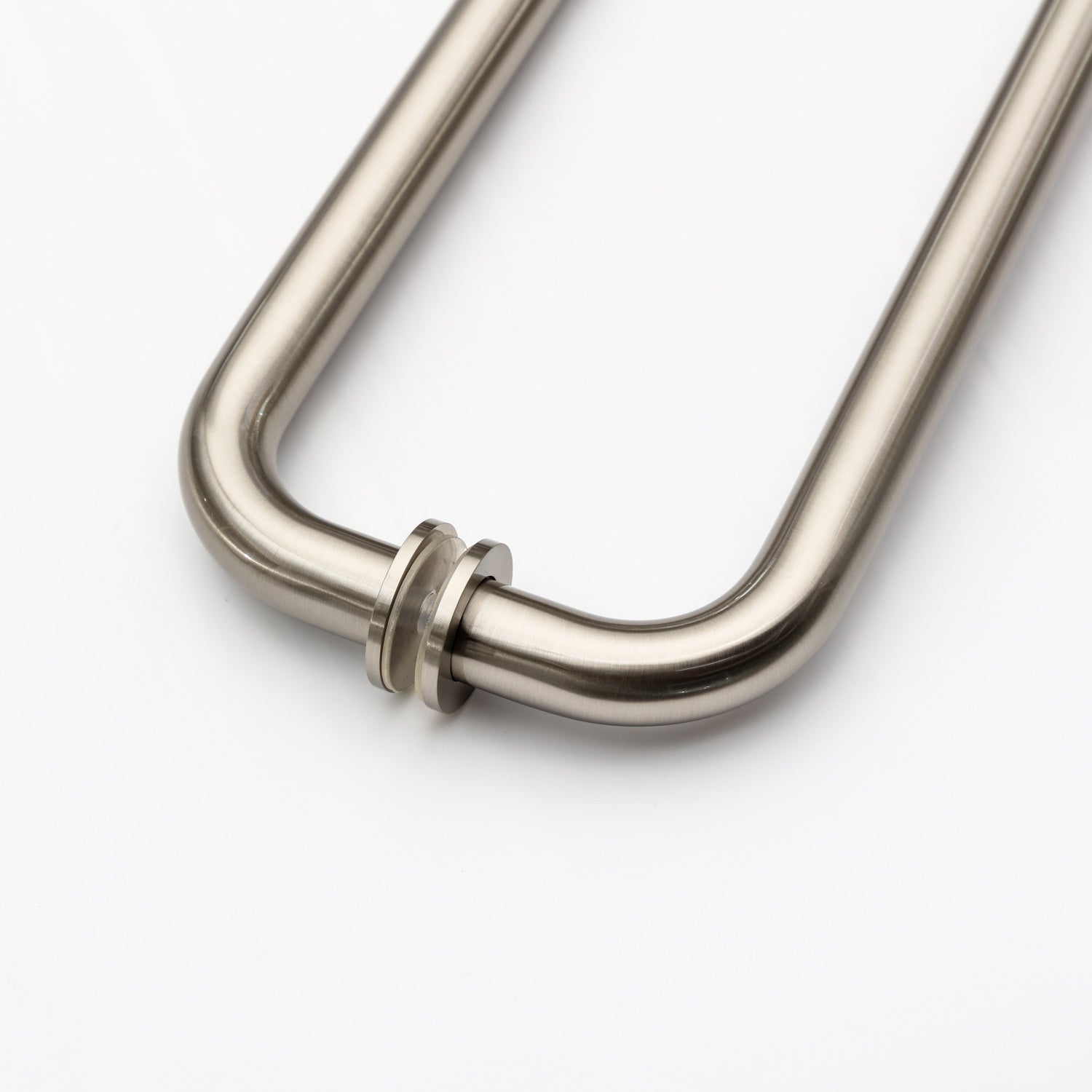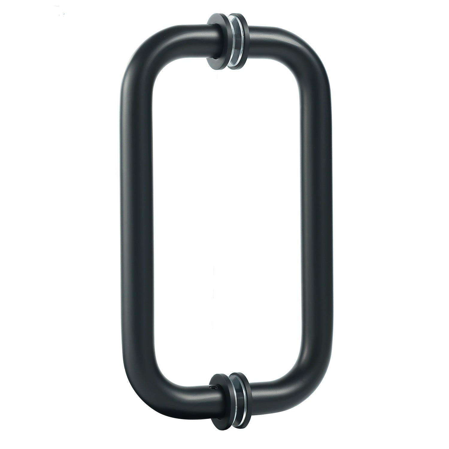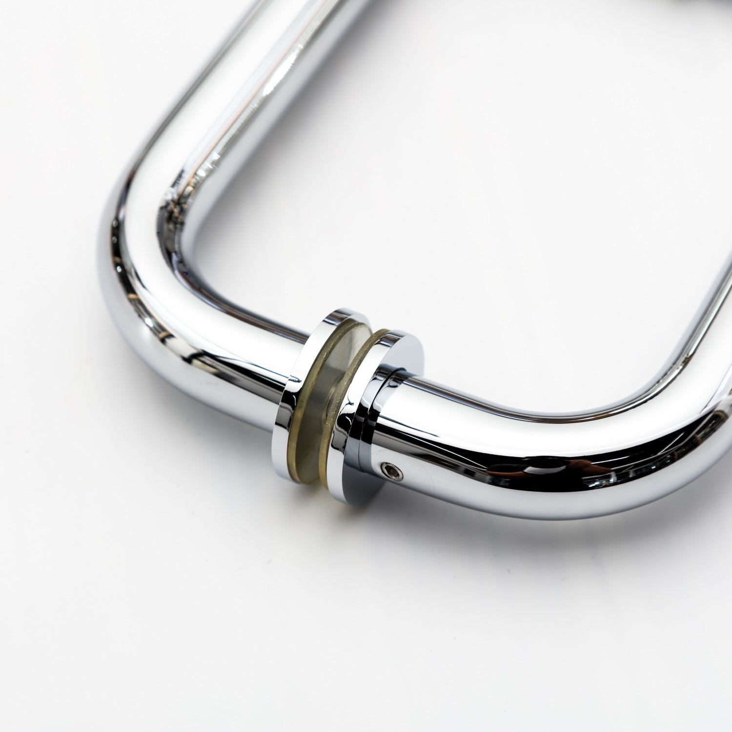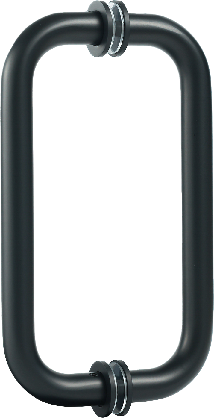 The Premium Tubular Back-to-Back Handles with Style Washers in 8" Size. Classic Style Pull featuring 1-1/4" (32 mm) diameter metal washers. The Back-to-Back Handle comes with a pull on both sides of the door, making it a popular choice for frameless shower door installations. All Pull Handles are available in 8" (152 and 203 mm) sizes, with finishes that complement most bathroom styles.