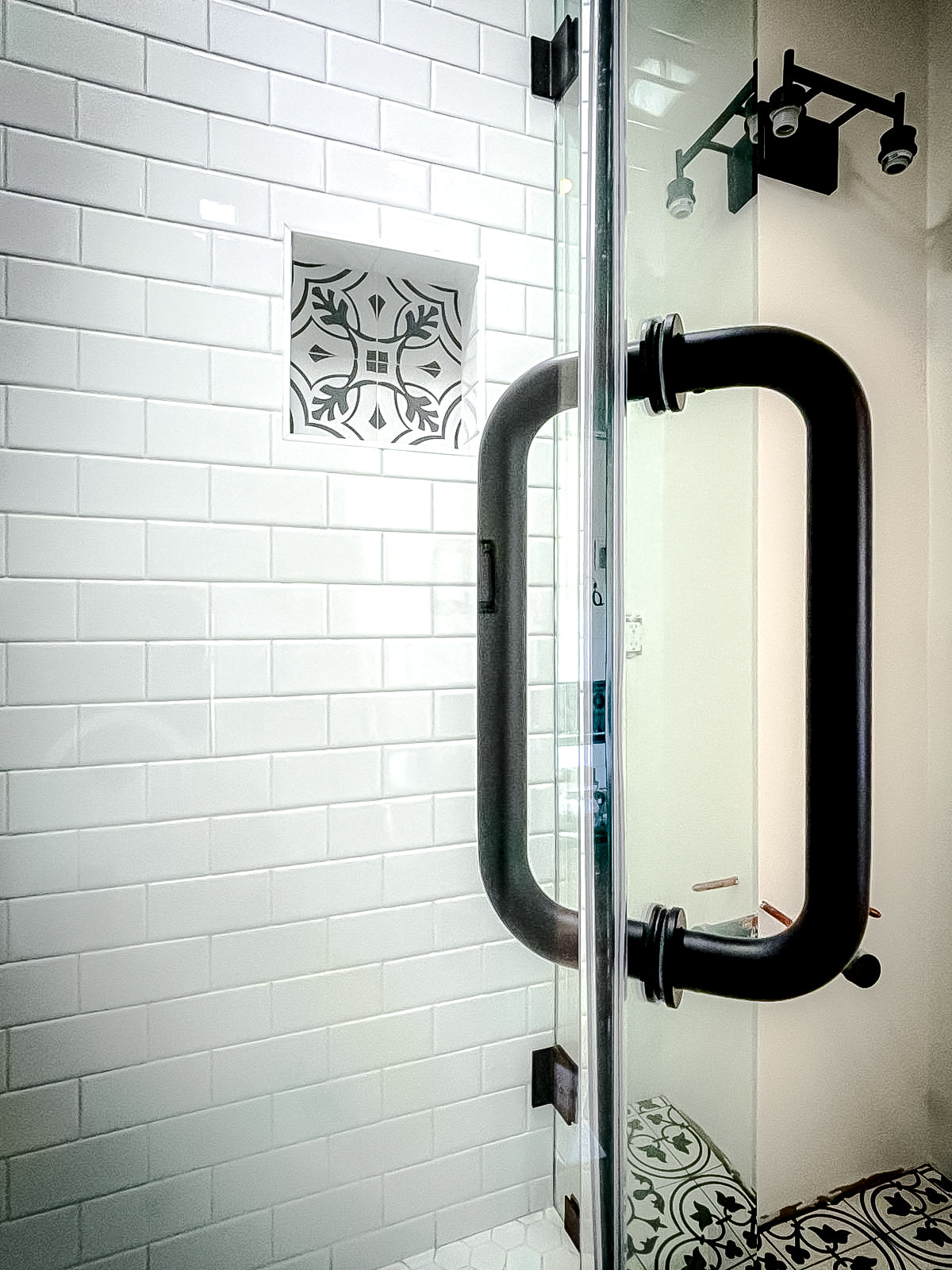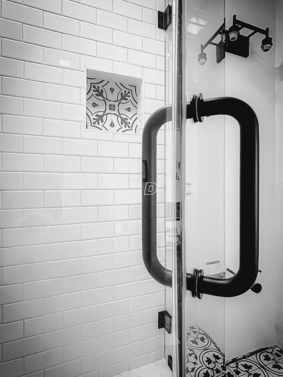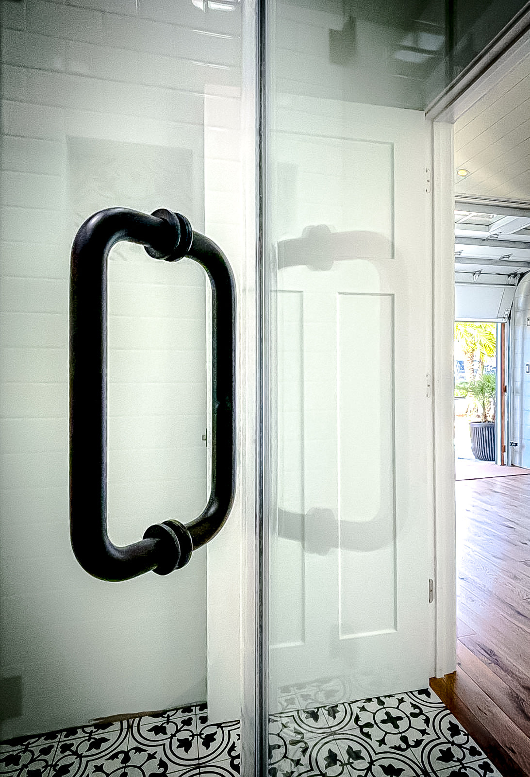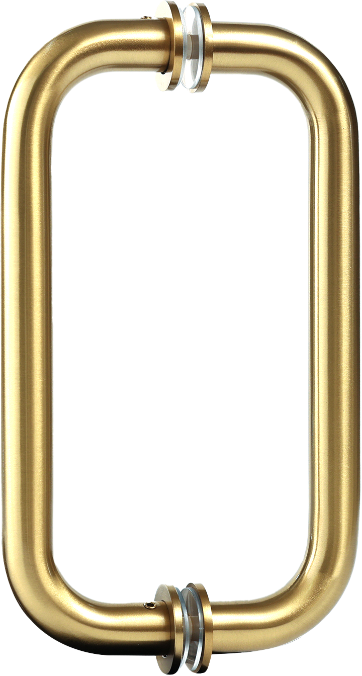 The Premium Tubular Back-to-Back Handles with Style Washers in 8" Size. Classic Style Pull featuring 1-1/4" (32 mm) diameter metal washers. The Back-to-Back Handle comes with a pull on both sides of the door, making it a popular choice for frameless shower door installations. All Pull Handles are available in 8" (152 and 203 mm) sizes, with finishes that complement most bathroom styles.